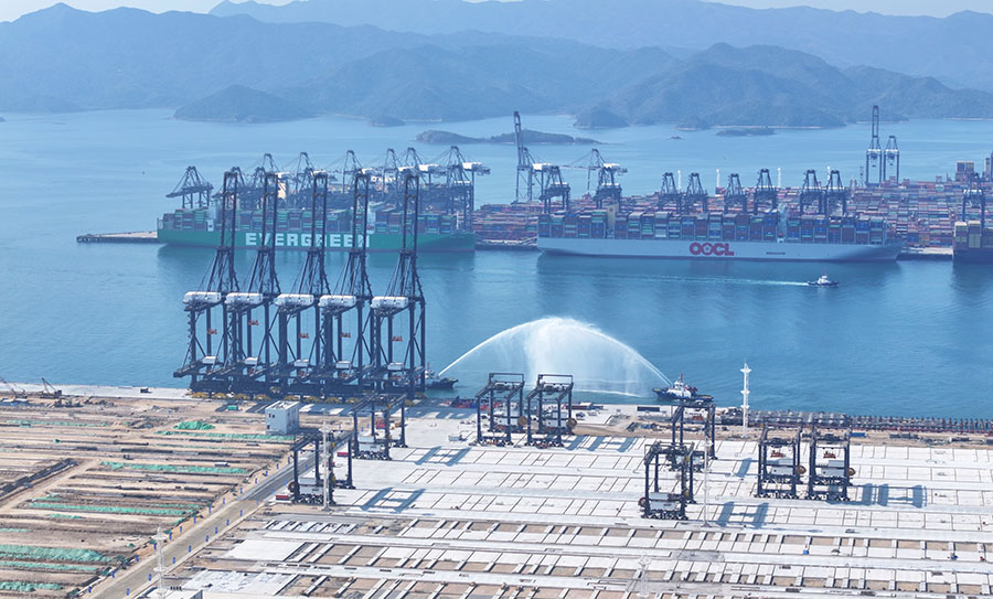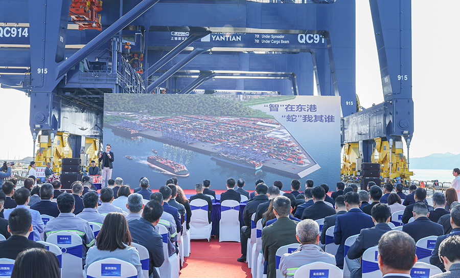 Hutchison Ports YANTIAN marked a significant milestone with the ceremonial receipt of its first batch of automated equipment for the East Port Project. The Project consists of three new 200,000 tonne automated container berths with a shoreline measuring 1,470 metres, a water depth of 18 metres alongside, and a designed annual throughput of 3 million TEU. The newly delivered five double-trolley quay cranes and eight automated rail-mounted gantry cranes represent a major advancement in operational efficiency, sustainability, and smart port development.